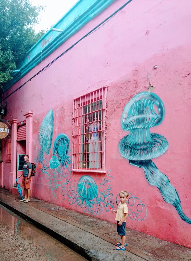 L’après midi, après la sieste nous nous baladons dans la ville, le quartier historique est à deux pas de la marina et regorge de maisons colorées, de fresques, graffitis. L’ambiance est très agréable, les gens gentils, la nourriture est très bonne et très bon marché. On peut mangé le midi au restaurant pour 4€ une soupe, plat du jour et boisson par exemple, ou bien manger un sandwich dans la rue pour moins d’un euros.