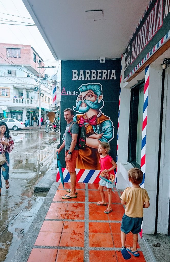 Ensuite Stella a eu un panari bien infecté qui a nécessité un passage dans une clinique de la ville, mise sous antibiotiques, antalgiques. Une semaine après le doigt est moins rouge, moins douloureux, mais un bourgeon gène la pousse de l’ongle et ne se résorbe pas malgré les pommades rachetées. Du coup un petit tour (2-3h de bus l’aller) à Baranquilla pour montrer le fameux doigt à la clinique recommandée par l’assurance santé et la voilà allégée d’un ongle et du bourgeon !… Aïe, Aïe, Aïe… Elle a eu bien mal mais heureusement ça commence à aller mieux, enfin… en dehors des pansements…