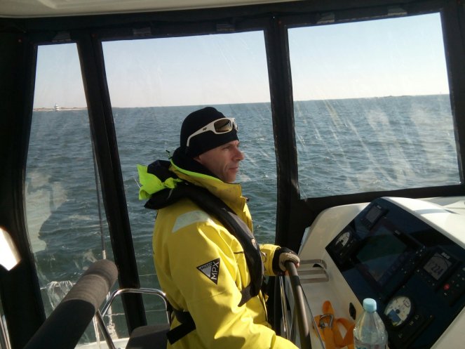 Et puis on a navigué avec ce bon vent d’est glacial à l’occasion de ce bel anticyclone franco-russe. Le but étant de poursuivre les tests de Cat et Terres pour détecter les éventuels couacs. Avec 15 noeuds établis, grand voile haute, génois déroulé et pas de mer, Cat et Terres a fait des pointes à 10 noeuds sur son amure préférée tribord amure ( le vent qui vient de la droite). On a bien fait de remplacer les hélices classiques par les hélices repliables Flexofold qui réduisent la traînée sous voile. Une petite virée d’une quinzaine de milles histoire de faire tourner le dessalinisateur avant de le calfeutrer pour le protéger des températures négatives à venir. C’est tout bon sur Cat et Terres, clignotant à droite on rentre au port!
