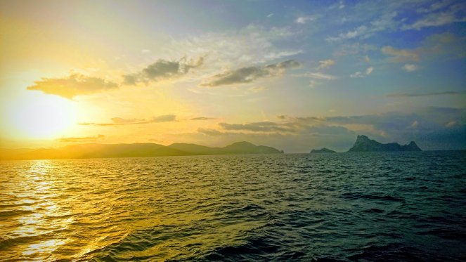 - La température de la mer à28-30º jusqu’à 32 dans le sud d’Ibiza. Les eaux cristallines, d’une clarté incroyable, où l’on pouvait voir notre ancre plantée par 10 m de fond! Le paradis des baigneurs et plongeurs!