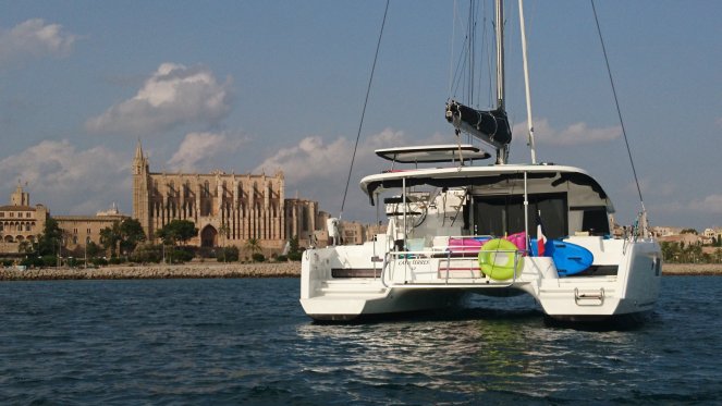 Palma de Majorque. Voilà un très beau mouillage qui change de nos habitudes. Belle vue sur la cathédrale et proximité du port pour débarquer en annexe et visiter la ville.