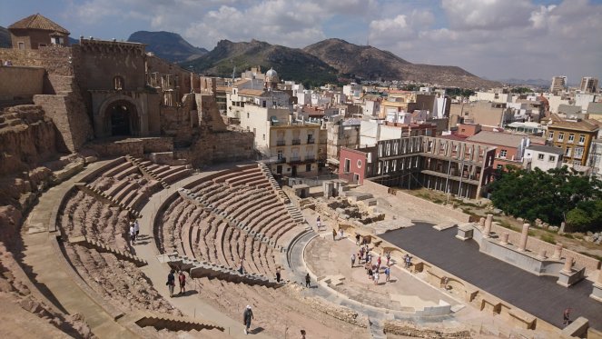 Après 3 nuits à regarder les orages nous contourner à Ibiza nous avons pris la fuite pour rejoindre Carthagène (continent espagnol). Une fois évité on se dit que c’était bien joli ce ciel illuminé d’éclair. Mais en réalité nous avions bien peur que ces monstrueux nuages chargés d’énergie passent au dessus de nous ! Deux navigations de jour, dans une mer peu confortable le premier jour, avec une pause au mouillage bien protégé devant le port de Calpe. Nous sommes arrivés à Carthagène le 12 septembre à la nuit tombante. Cette fois ce sera amarrage au quai en pleine ville, après un mois et demi d’autonomie au mouillage. Pour 40€ la nuit, accès à la piscine compris c’est raisonnable et bien plus agréable que les 2 endroits où des mouillages sont possibles.